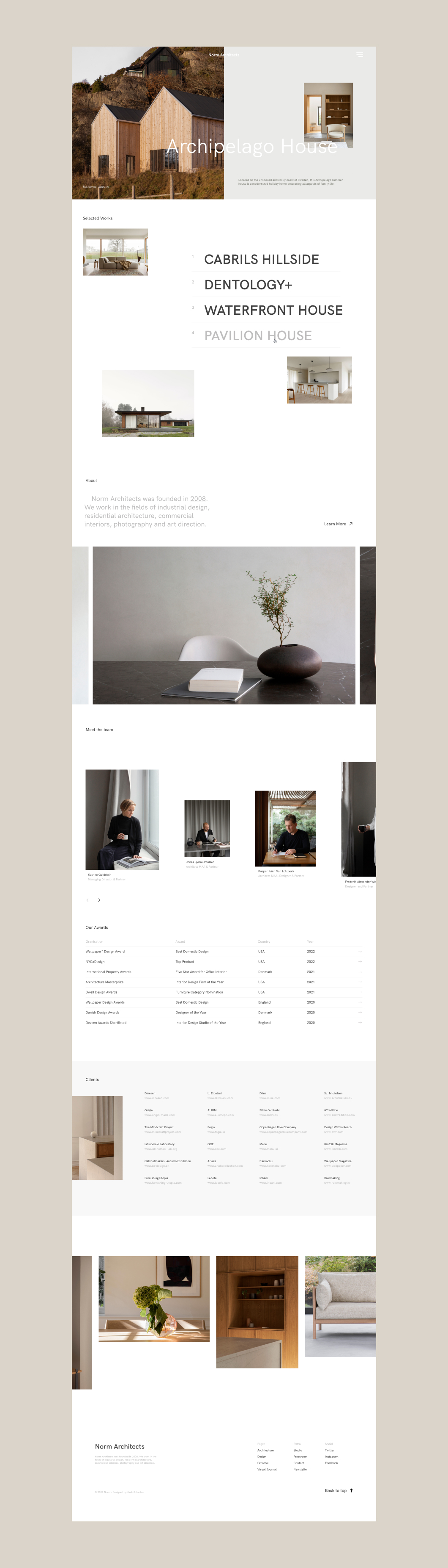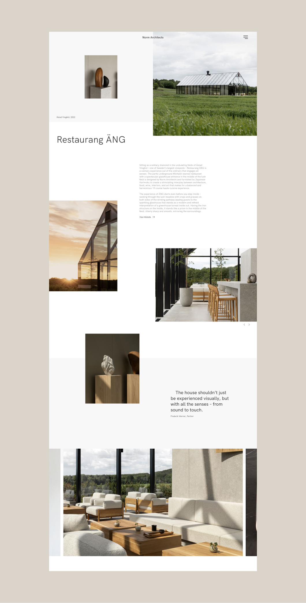 I designed and developed a concept website for Norm, a Copenhagen-based architecture firm celebrated for its clean, contemporary aesthetic. The aim was to create a sleek, minimal platform that reflected their design philosophy while showcasing their portfolio, team and services. With intuitive navigation, a fully responsive layout and a dedicated blog for sharing architectural insights, the site delivers a seamless, user-focused experience that elevates the brand across all devices.
